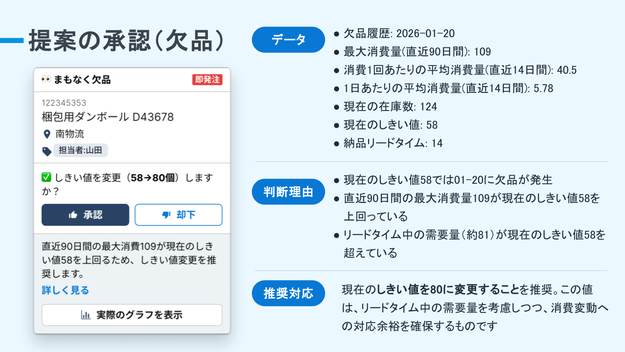 実運用の中で具体的な在庫削減成果が確認できたことは、AIが経営と現場をつなぐ“使える存在”になり始めた証だと考えています。」