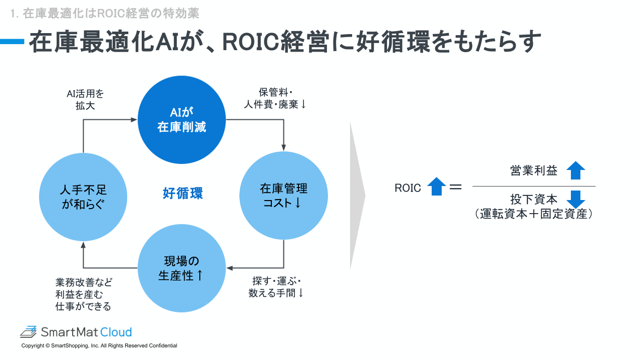 エスマットは、在庫を最適な状態で維持し続けることこそが、ROIC経営を実現するための現実的な打ち手になると考えています。
