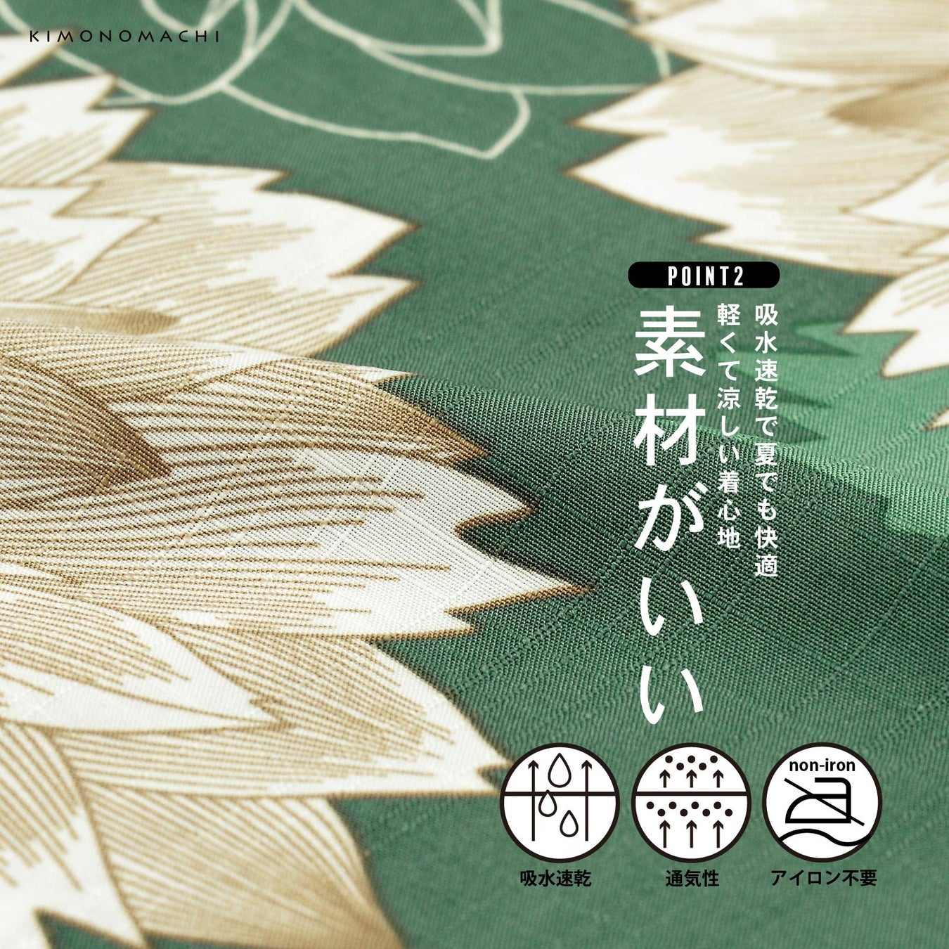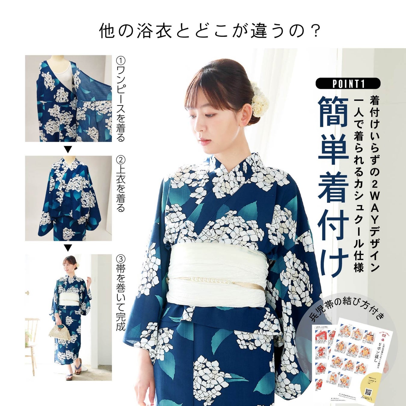 【着用シーン・季節】夏祭りや花火大会などの夏のイベント、普段のおしゃれ着として、旅行先での散策など。着付けの手間がないので、思い立った時にさっと着てお出かけできるのが魅力です。