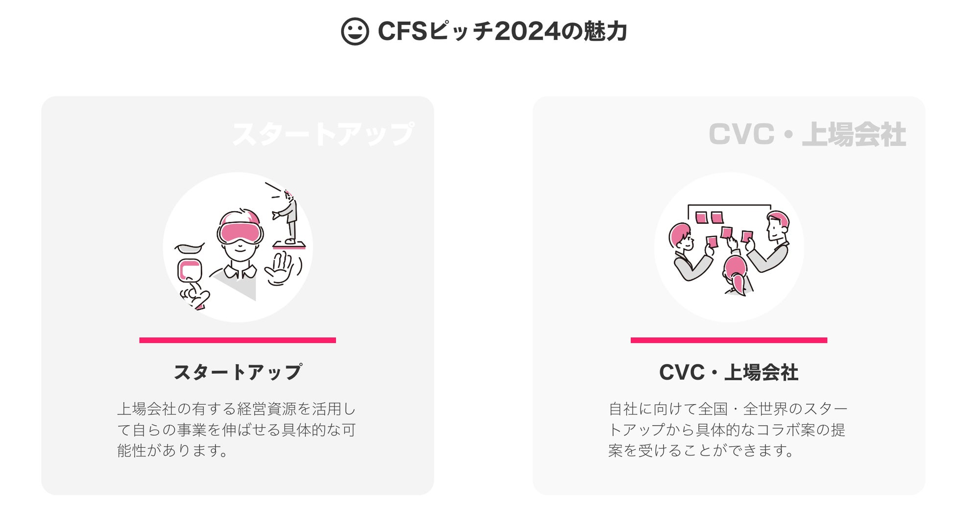 スタートアップ支援の株式会社CFスタートアップス(東京都渋谷区)、株式会社CFスタートアップパートナーズ(静岡県牧之原市、以下「CFSP」といいます。)は、「CFSオープンイノベーション・ピッチ2024」(以下「CFSピッチ2024」といいます。)を開催します。