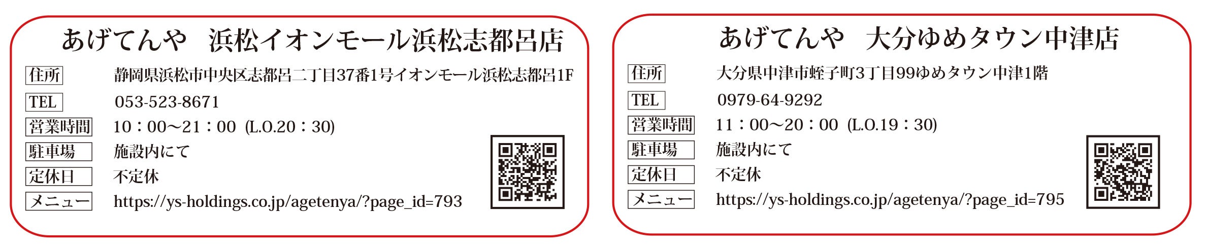 メニュー:https://ys-holdings.co.jp/agetenya/?page_id=795