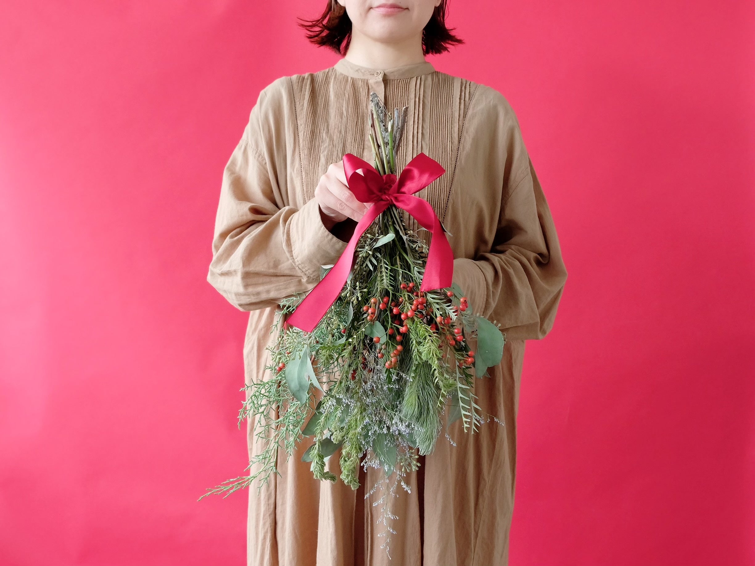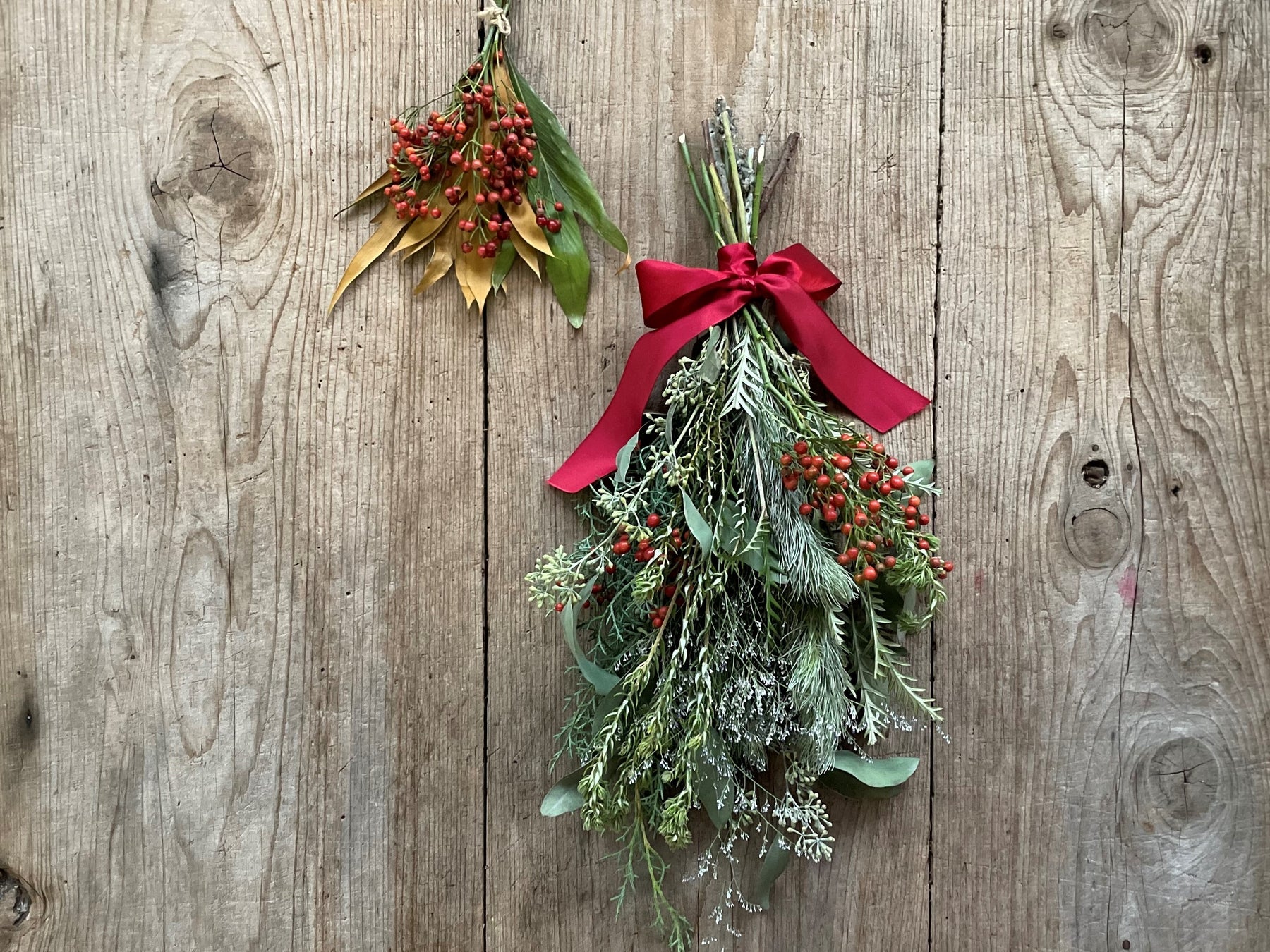 下:今回のレコメンドブーケ2種はラッピングを外して、逆さに壁にかけておけば今年も引き続き人気のスワッグに早変わりする2wayアイテムです。