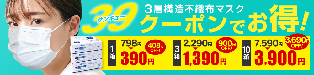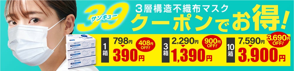▼不織布マスクが”サンキュー価格”で買えるクーポン