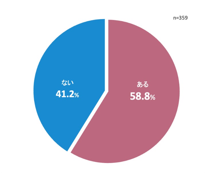 ●会社を辞めたいと「思ったことがある」(58.8%)が「思ったことがない」(41.2%)を上回った(図表3)