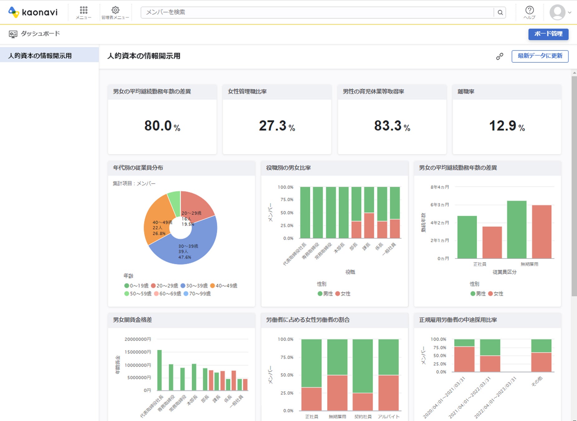 【カオナビ】人的資本の情報開示項目を数値・グラフで一覧表示新機能「人的資本テンプレート」を提供開始