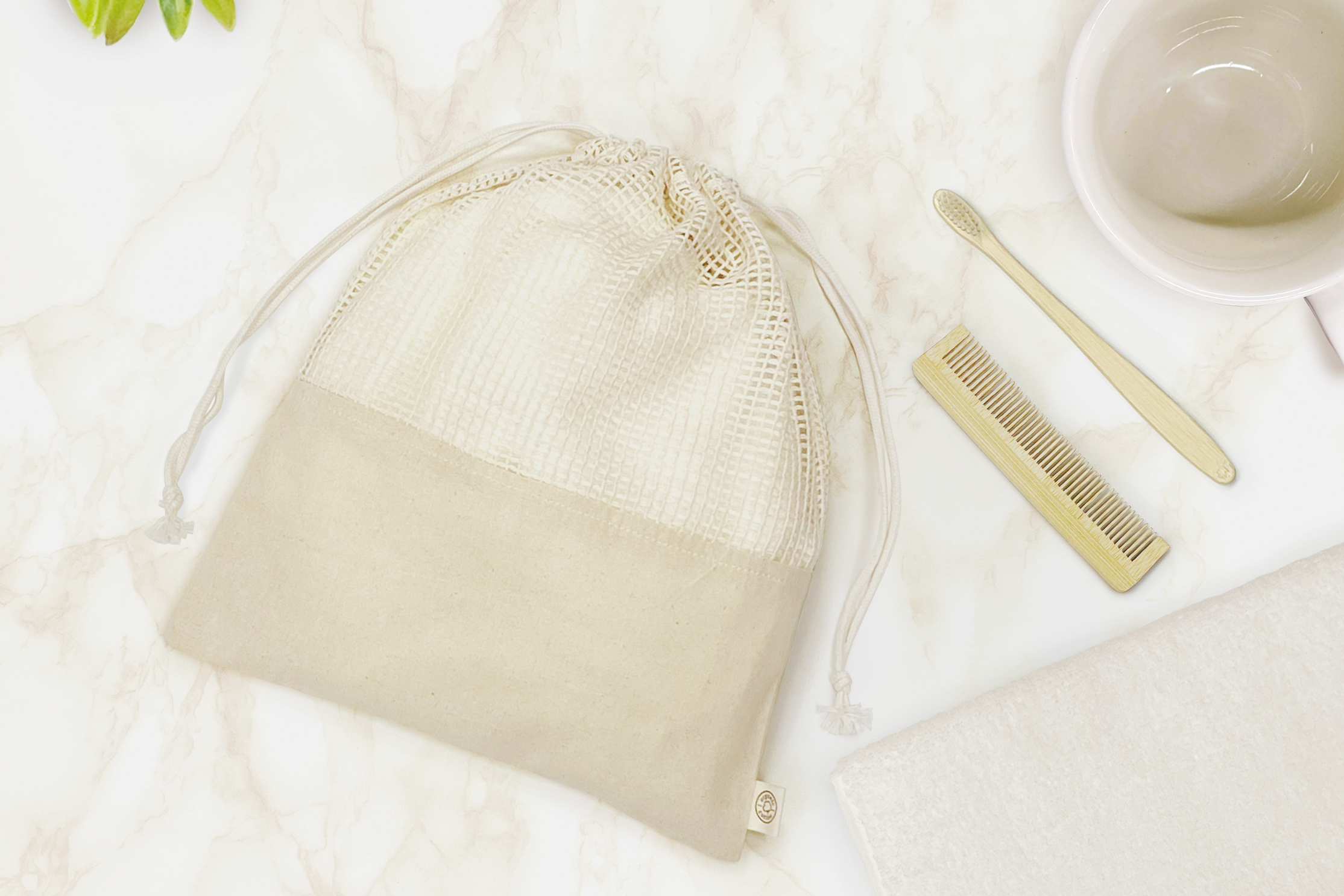 今回は現在数多くのホテルに導入されている竹歯ブラシ・竹ヘアコームと、オーガニックコットン・再生コットンを使用したオリジナル巾着をセットにしました。使い勝手が良いのでホテル利用後も持ち帰って長く使うことができるエコ商品です。