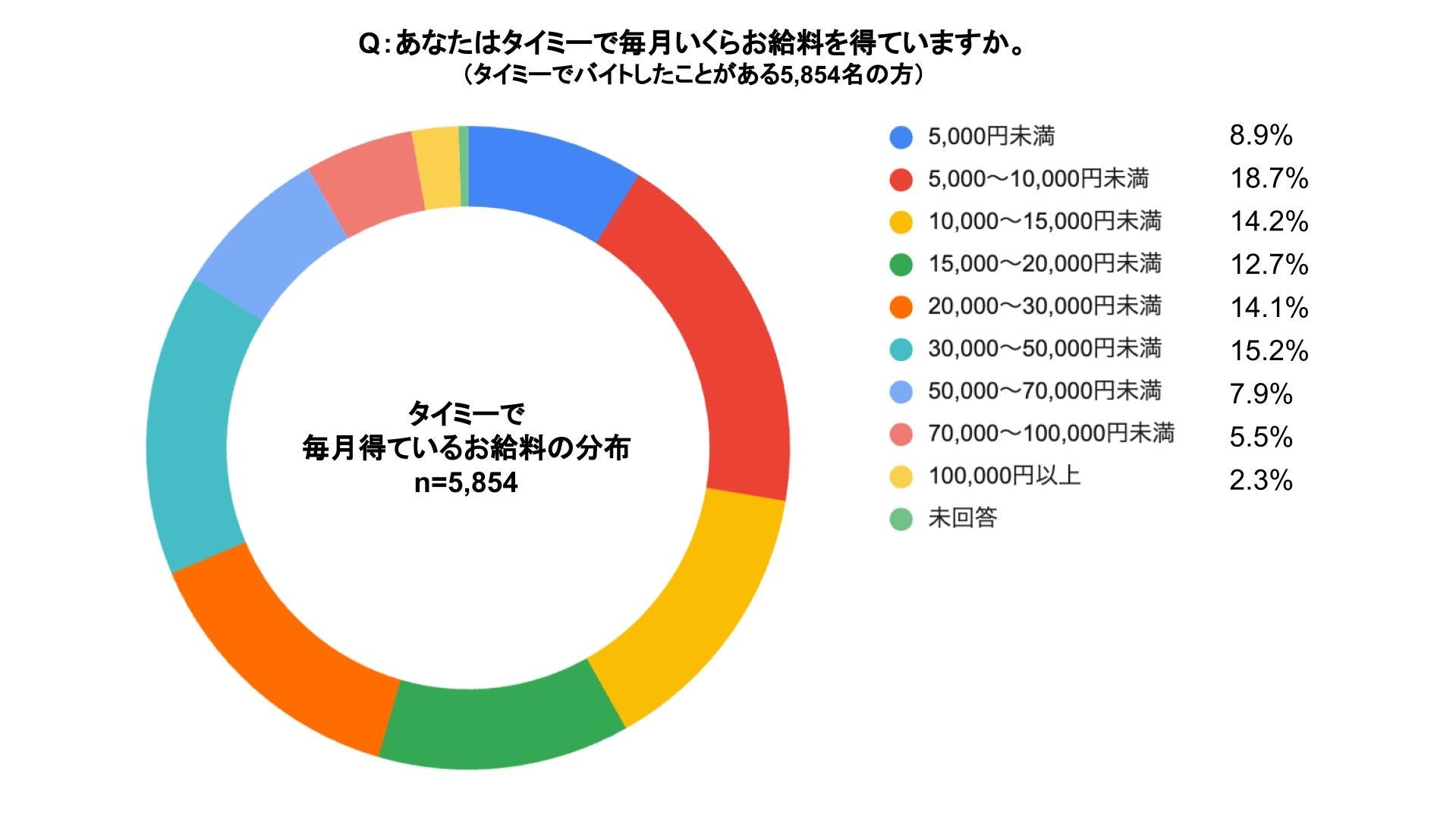 タイミーのバイトで得た毎月の収入の中央値は、1ヶ月あたり15,000〜20,000円程度。
