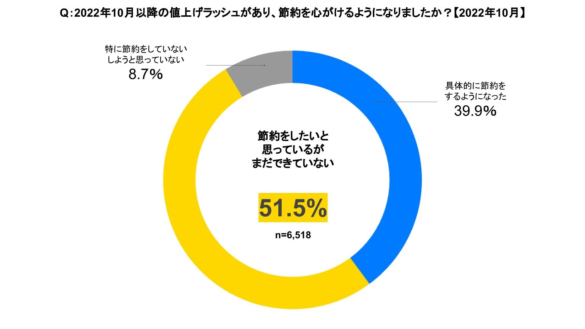 多くの人が値上げの影響を感じる一方で、5割以上が「節約したいけどできていない」と回答。