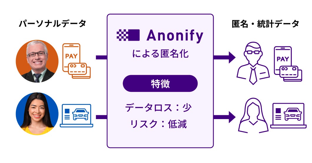 Anonify*1:Anonifyは、世界中で進む先端的なプライバシー分野の学術研究を土台に、実務的なデータ利活用に応用できるようLayerXが独自に開発した様々なアルゴリズムから成るプライバシー保護技術です。