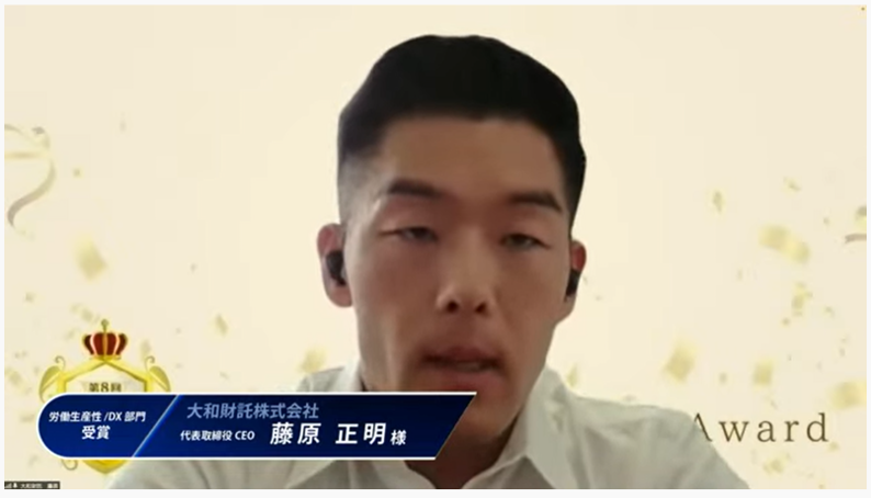 6月23日(木)にオンライン授賞式が行われ、代表取締役CEO 藤原正明が登壇し、受賞に対する思いや当社の取り組みについてコメントいたしました。