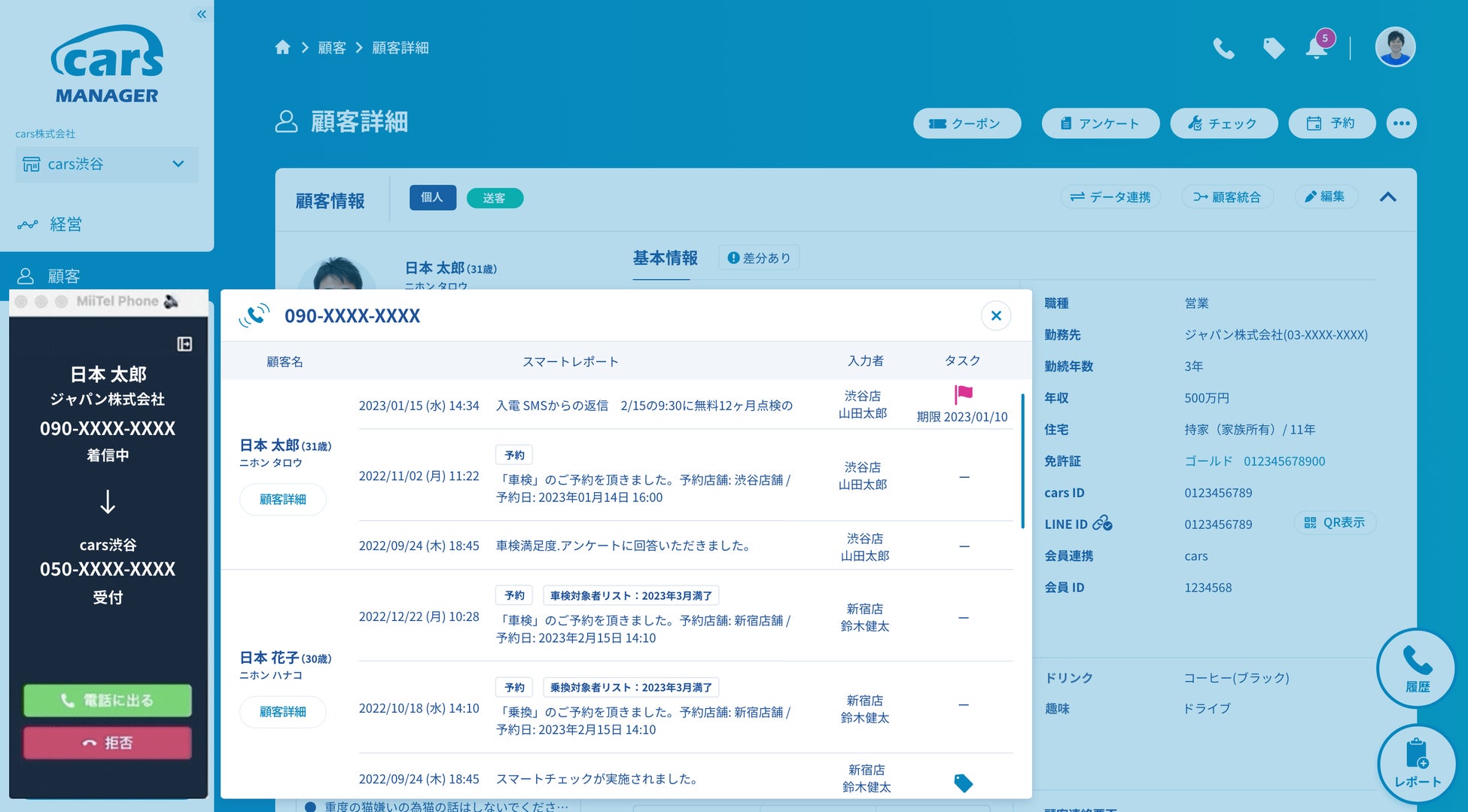 株式会社RevComm(レブコム、本社:東京都渋谷区、代表取締役:會田武史)が提供する音声解析AI電話「MiiTel(ミーテル)」は、cars 株式会社(カーズ、本社:東京都渋谷区、代表取締役社長:藤堂高明、以下「cars」)が提供する、自動車業界のマーケティングAI社員「cars MANAGER(カーズマネージャー)」との連携を開始しました。これにより、「cars MANAGER」から「MiiTel」を起動し、架電業務や通話記録の確認を行うことが可能になります。