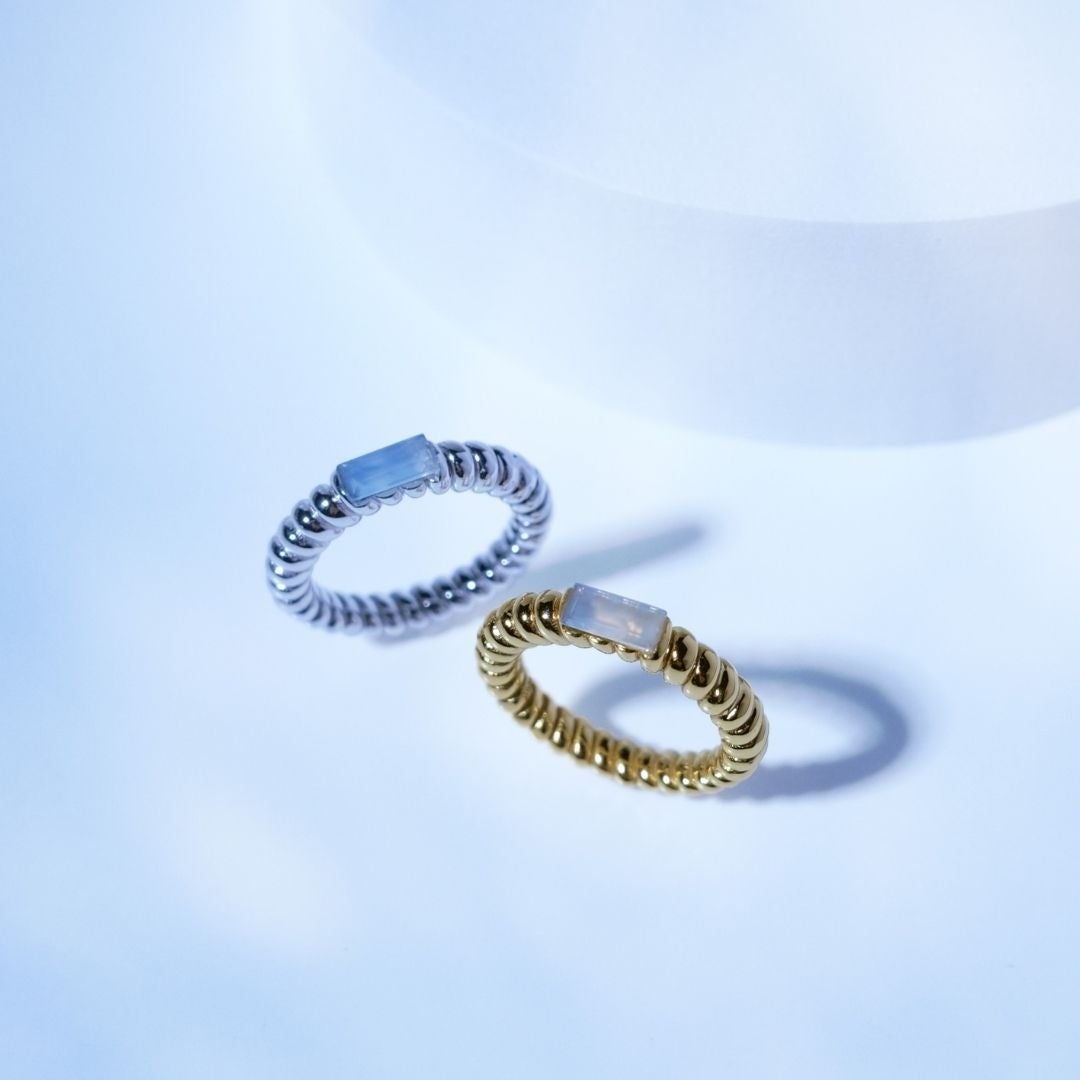 繊細なツイストデザインが、指先に品格を添えます。ウェーブを打ったような繊細なツイストデザインが特徴のリング。アクアマリンが指先にさりげないアクセントを加えるー。高橋が幾度もの試作を重ね、理想のフォルムを追求したツイストデザインは、その卓越した美しさを際立たせます。上質なアクアマリンが放つ輝きは、身に着ける人の指先を華やかに彩ります。