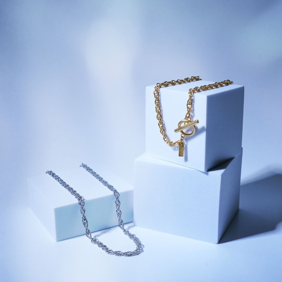 洗練されたマットチェーンが、腕に優雅に沿い、滑らかな美しさを描き出すマットチェーンブレスレット。ネックレスと一見リンクしたチェーンを使用しながらも、細部で異なるデザインが施され、独自の存在感を放ちます。留め具はたかはしのこだわりから、これまでのコレクションにはなかった新しいデザインを採用し、従来よりも留めやすく、使いやすさが向上。エンドパーツには、「BLANK SPACE」のロゴと高橋からの特別なメッセージが刻印されています。