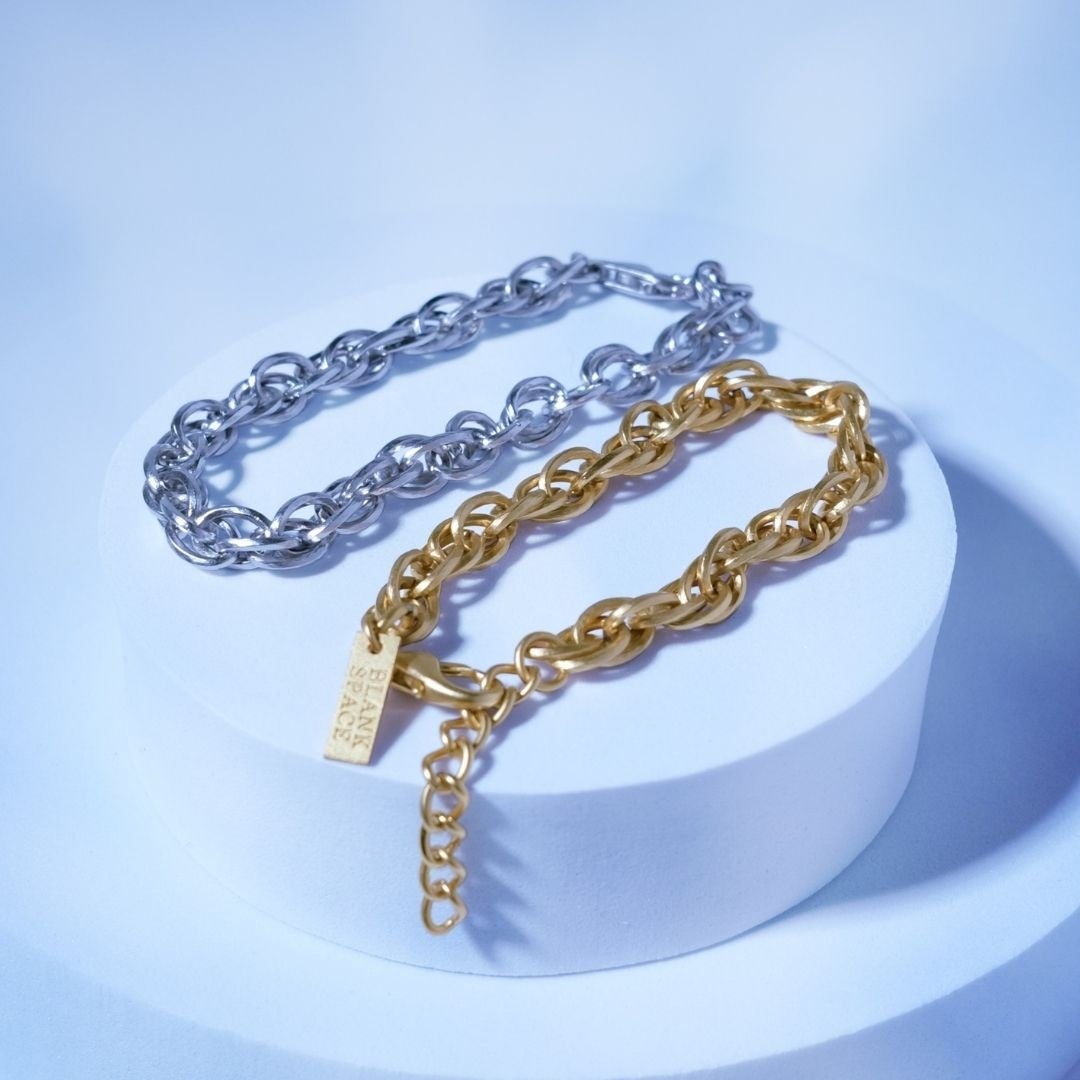 シンプルながらも、複雑に編み込まれたチェーンのコマが、上品な光沢を放ち、見る角度によって表情を変える、奥深い美しさを実現。存在感のあるマットな質感は、どのようなスタイルにも合わせやすく、デイリーユースから特別な日の装いまで、幅広く活躍します。エンドパーツには、「BLANK SPACE」のロゴと高橋からの特別なメッセージが刻印され、あなただけのアクセサリーに。