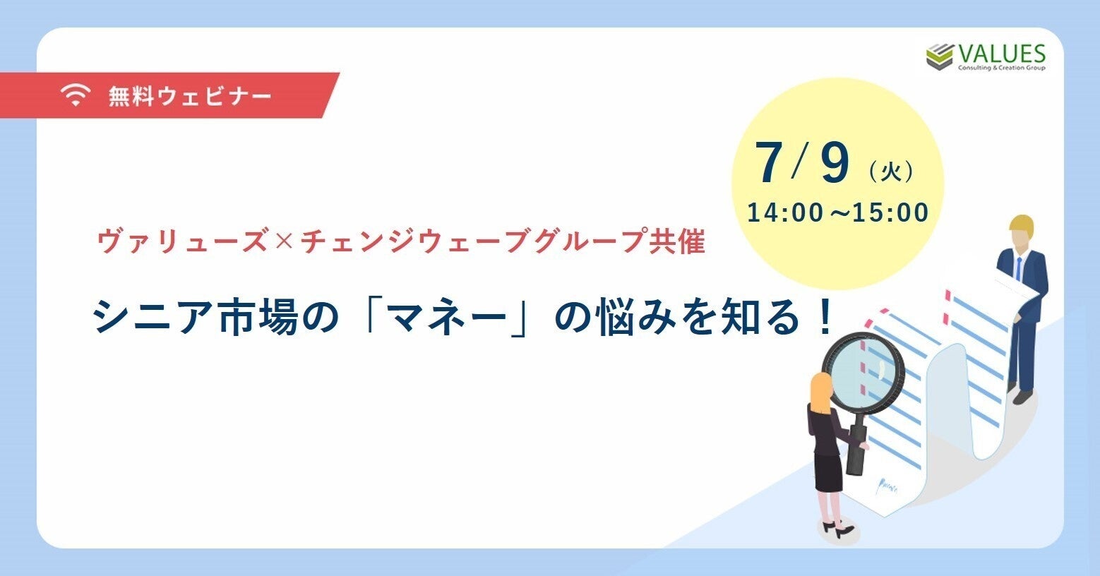 7月9日(火)、シニア市場のリアルな「マネーの悩み」を知る!ヴァリューズ×チェンジウェーブグループ共催セミナー開催のお知らせ
