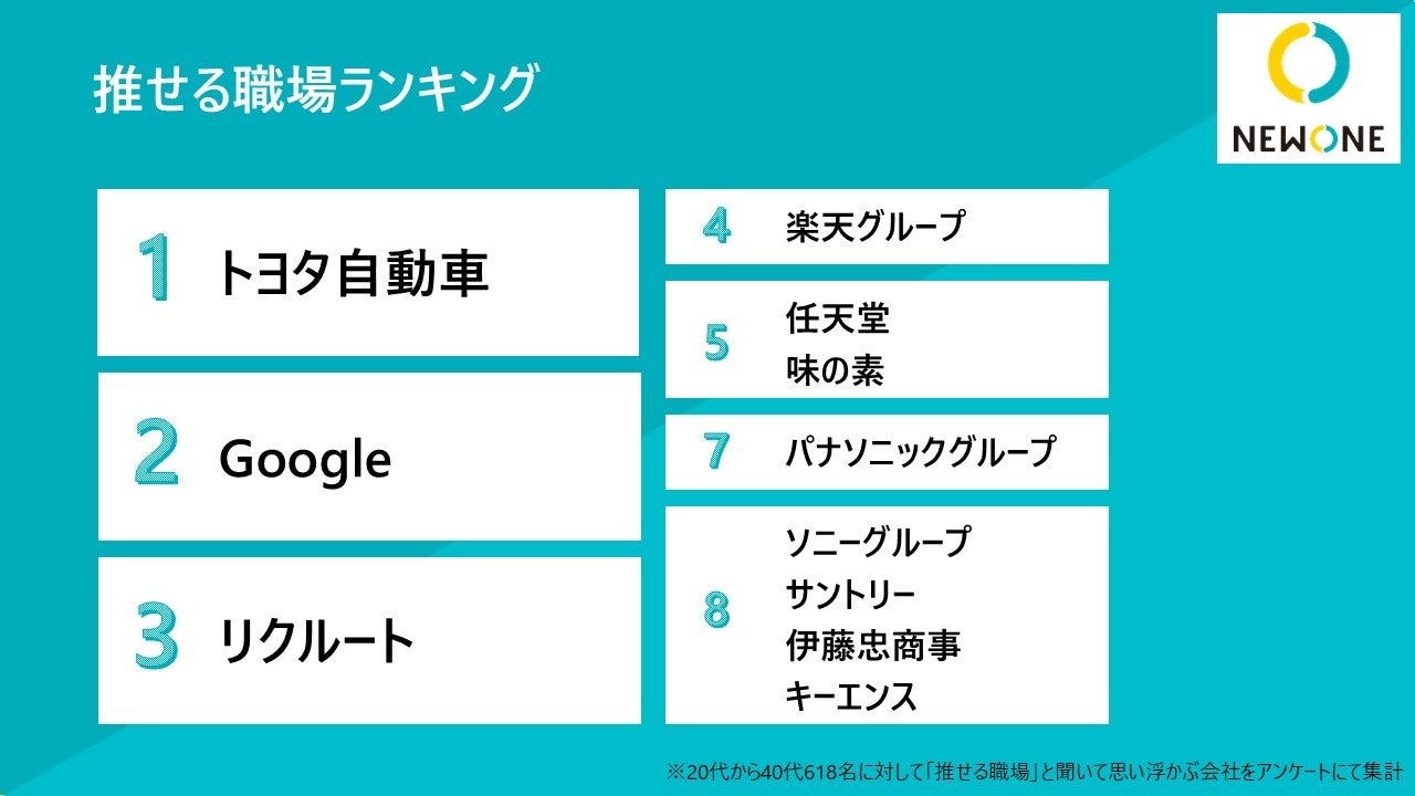 ”推せる職場”と聞いて思いつく企業は?トヨタ自動車・Google・リクルートがTOP3に!