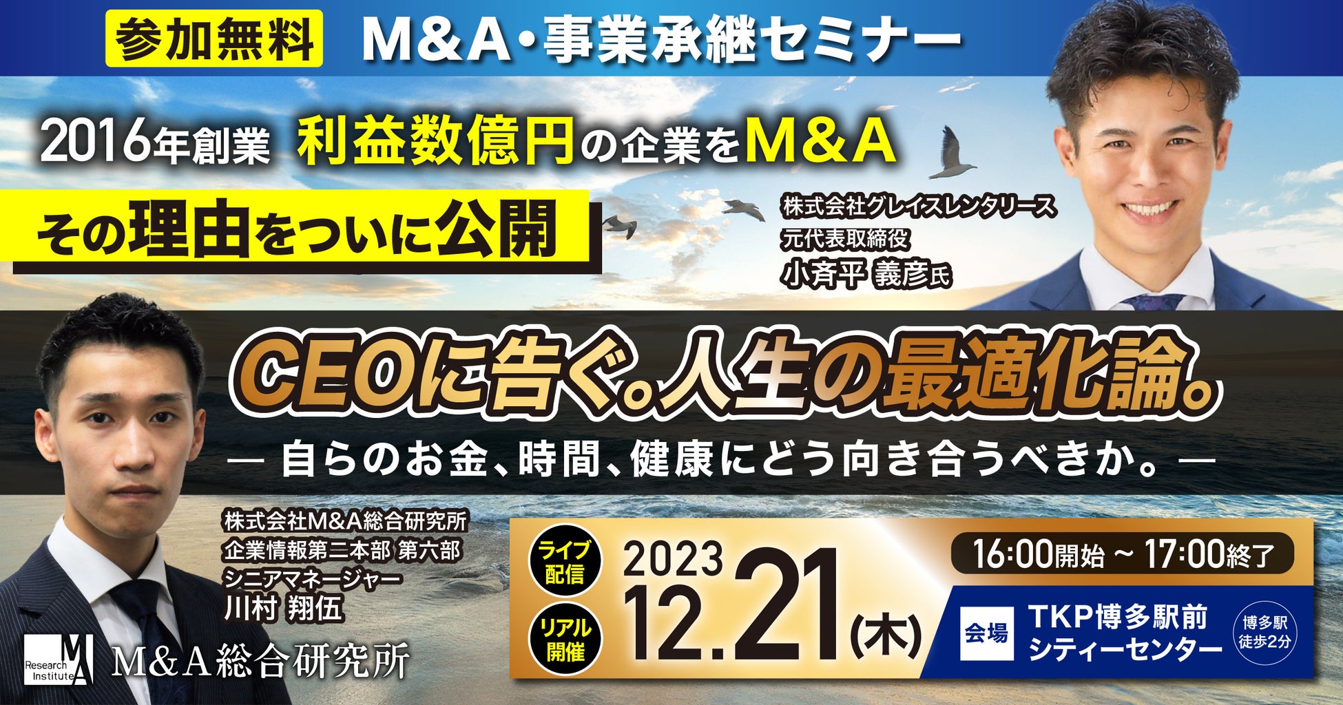 【博多開催×ライブ配信】利益数億円の企業をM&Aしたオーナーが語るM&Aセミナー