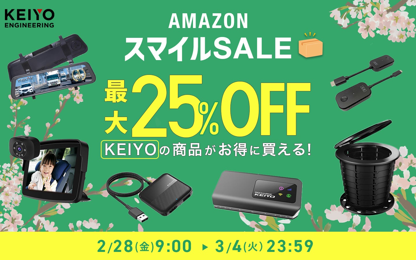 KEIYOの人気カーグッズをお得に買えるチャンス!「AmazonスマイルSALE」は2025年2月28日(金)9:00から3月4日(火)23:59まで!