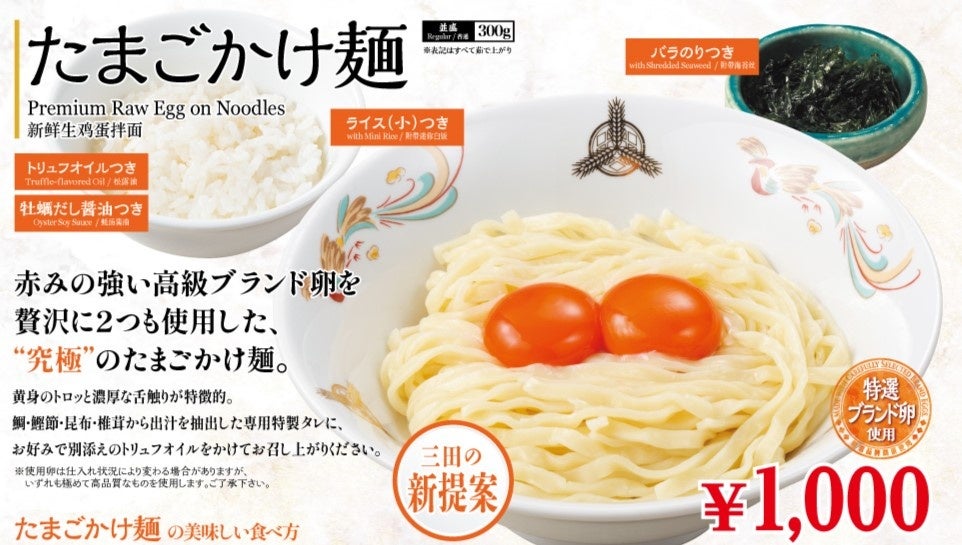 また、毎月3日は「三田の日」として、三田製麺所公式アプリ・X・Instagram・TikTok 限定でお得な画像を配信。画像のご提示で全部乗せトッピング「全部乗せ」をお一つ値引きしております。