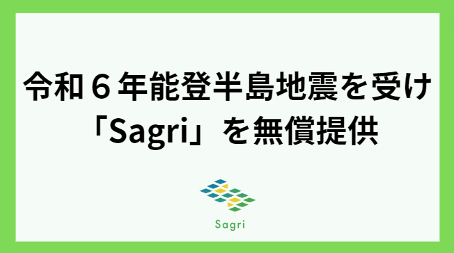 令和6年能登半島地震を受け、サグリは石川県内において衛星データによる農地の生育・土壌分析が可能なソリューション「Sagri」を無償提供いたします。