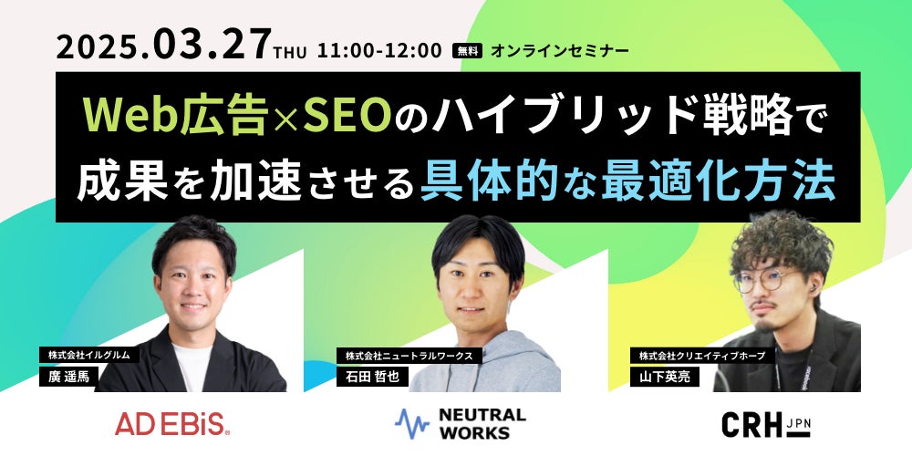 【3/27無料ウェビナー】「WEB広告×SEOのハイブリッド戦略で成果を加速させる具体的な最適化方法」に、弊社取締役CMO石田の登壇が決定!
