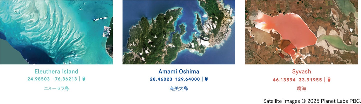 く色を抽出した海の衛星写真が広がります。メッセージとともに、ここでしか手に入らないパッケージをぜひお楽しみください。