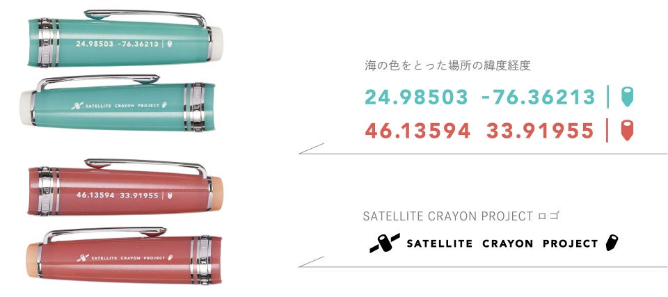 SATELLITE CRAYON PROJECT とは、日本最大の衛星通信事業社であるスカパーJSAT株式会社が2022年に立ち上げた、人工衛星から見た地球の色を扱うカラーブランドです。宇宙から撮影した衛星写真にうつる地球の色を通して、色の豊かさを伝えるとともに、地球に興味を持ってもらい、好きになってもらうことを目的としています。第一弾として制作された「海のクレヨン」は、世界三大デザイン賞をはじめ、日本文具大賞、グッドデザイン賞など国内外で数々の賞を受賞しています。各色にあえて色の名前はつけておらず、代わりに色を採取した場所の緯度・経度を記載しているのが特徴です。