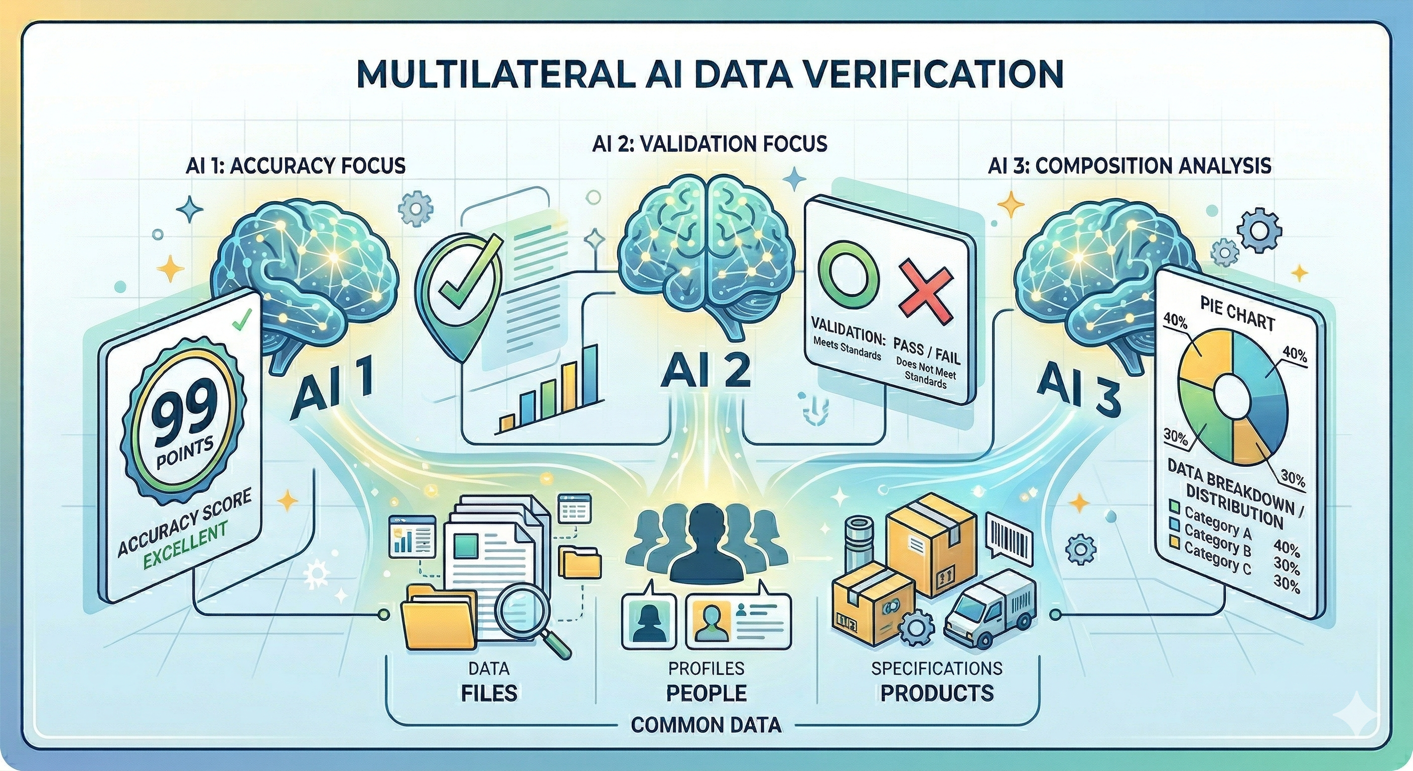 さらに、複数の異なる主体・モデルによるAI(「マルチAI」)が多角的に評価・検証を行い、その結果をスコアリングしてブロックチェーンに自動記録する構成まで特許で権利化しています。