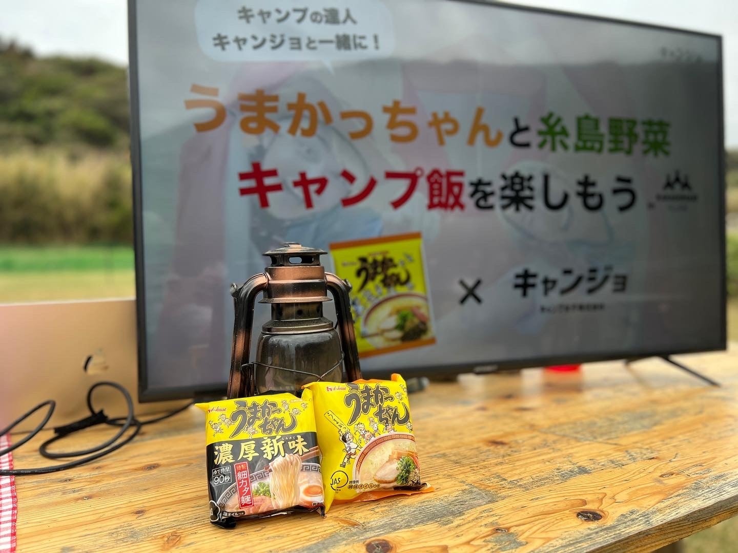 そのうまかっちゃんを使って、キャンジョがキャンプ飯バージョンにアレンジレシピを考案。福岡でも人気のキャンプ場、唐泊VILLAGEにて体験イベントを行いました。