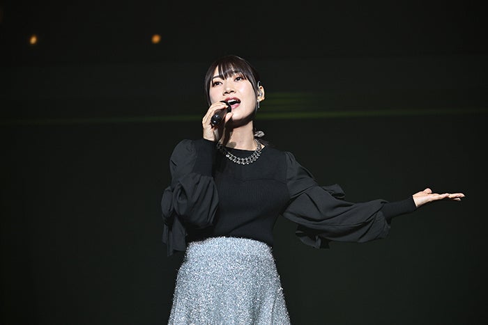 スタートを飾るライブパートの1曲目は、小木曽雪菜役・米澤円さんによる「届かない恋」(『WHITE ALBUM2 -introductory chapter-』OP)。米澤さんは物語において重要な鍵を握る同曲を、生バンド演奏とともに切なく歌い上げ、観客を作品の雰囲気へと一気に引き込んでいきました。2曲目は、冬馬かずさ役・生天目仁美さんが米澤さんと交代する形で登場し、『WHITE ALBUM2 -closing chapter-』のOPテーマ「幸せな記憶」を披露。雪菜、かずさという2大ヒロインの想いをそれぞれ存分に感じられました。
