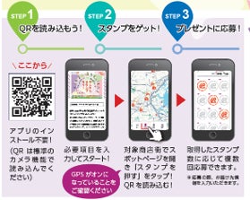 ③商店街の対象店舗に掲出されているQRコードを読み込み、スタンプをゲット