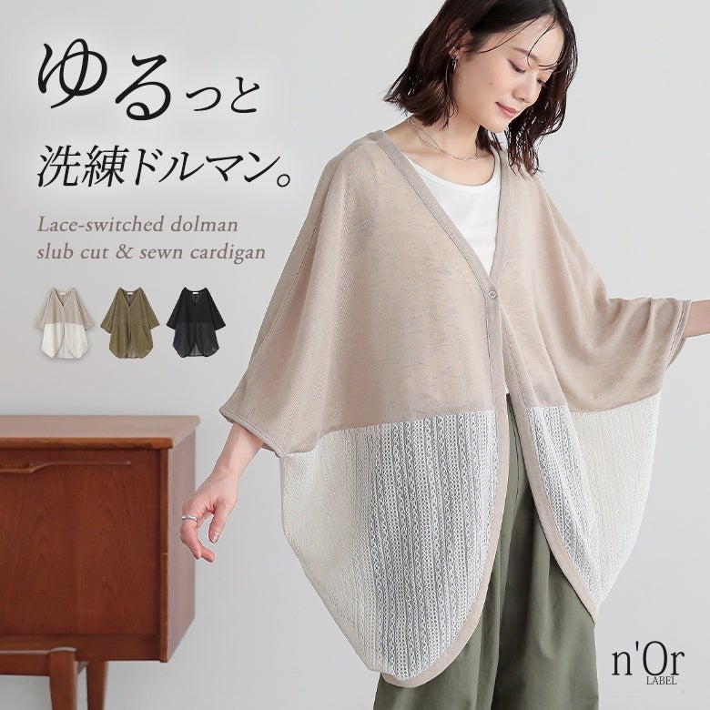 n'OrLABELレース切替ドルマンスラブカットカーディガン