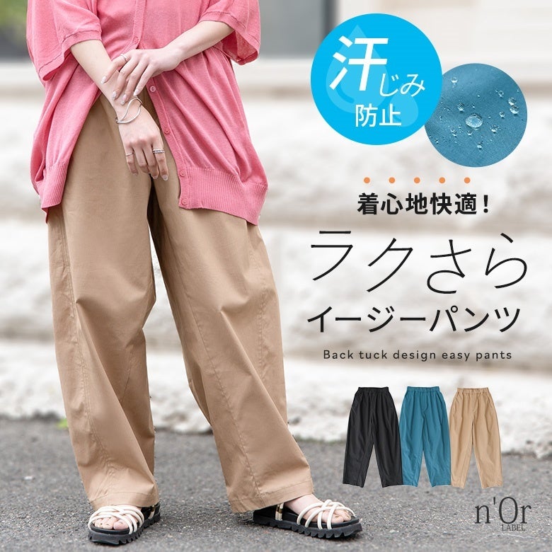 n'OrLABEL汗じみ防止イージーバックタックパンツ