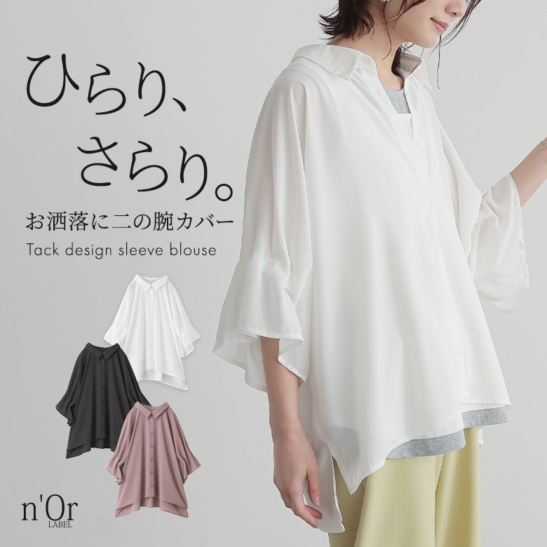 n'OrLABELタックデザインスリーブブラウス