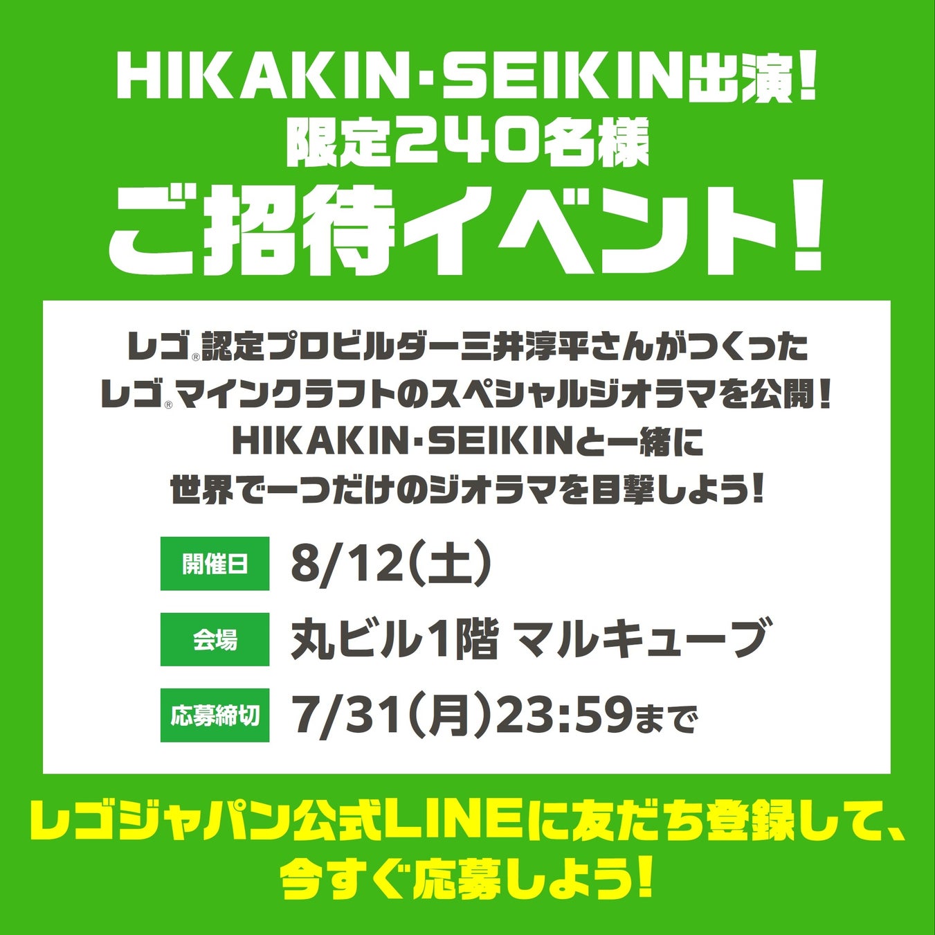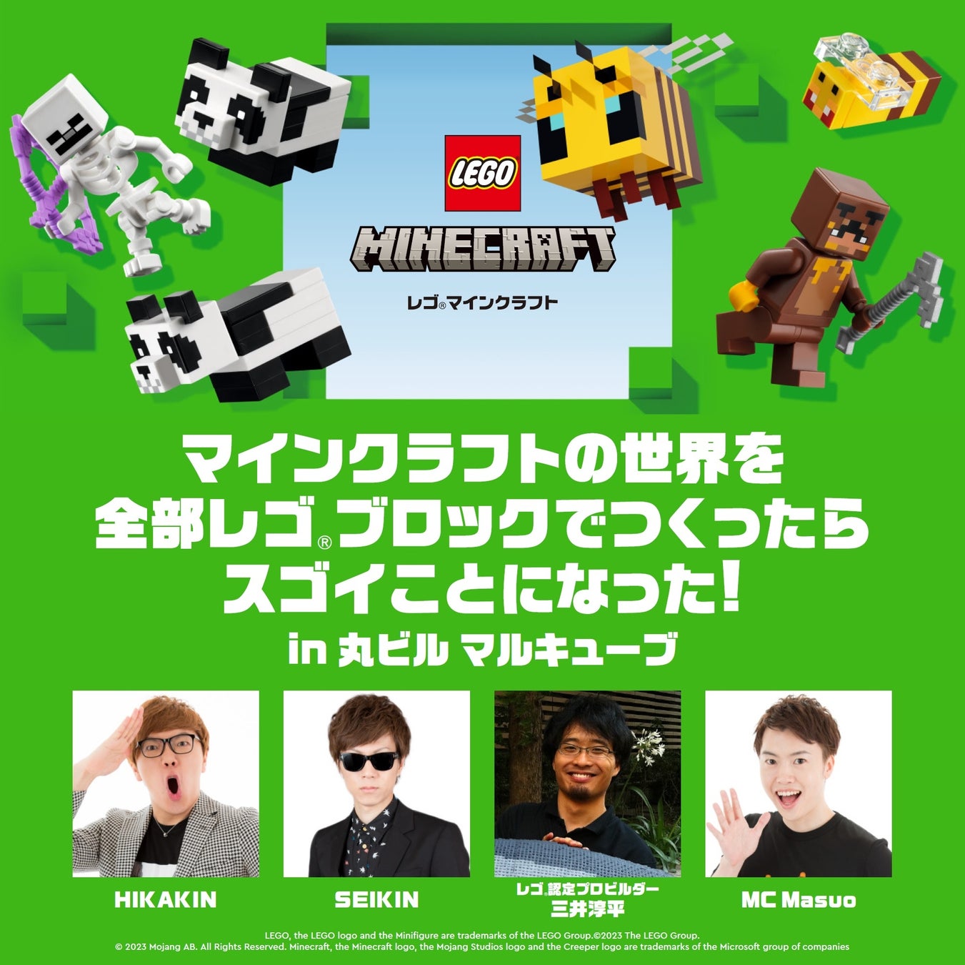 8月12日(土)には、イベント「マインクラフトの世界を全部レゴ®ブロックでつくったらスゴイことになった! in 丸ビルマルキューブ」を実施予定。人気動画クリエイターのHIKAKINさん&SEIKINさん兄弟、さらに三井淳平さんも登場。MCとしてMasuoさんも参加して、ジオラマを囲んでトークイベントを実施予定です。7月末にはHikakinGamesにて本イベントに関連する動画公開予定、続報ご期待ください。