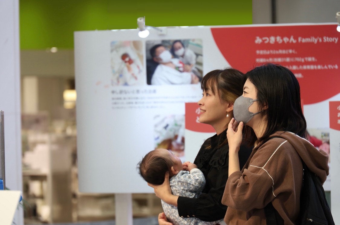 イベント内の展示ブースでは、展示のメインとなる、小さく早く生まれた赤ちゃんの成長をたどった4組のご家族の写真展を来場者の方がじっくりご覧になっていました。