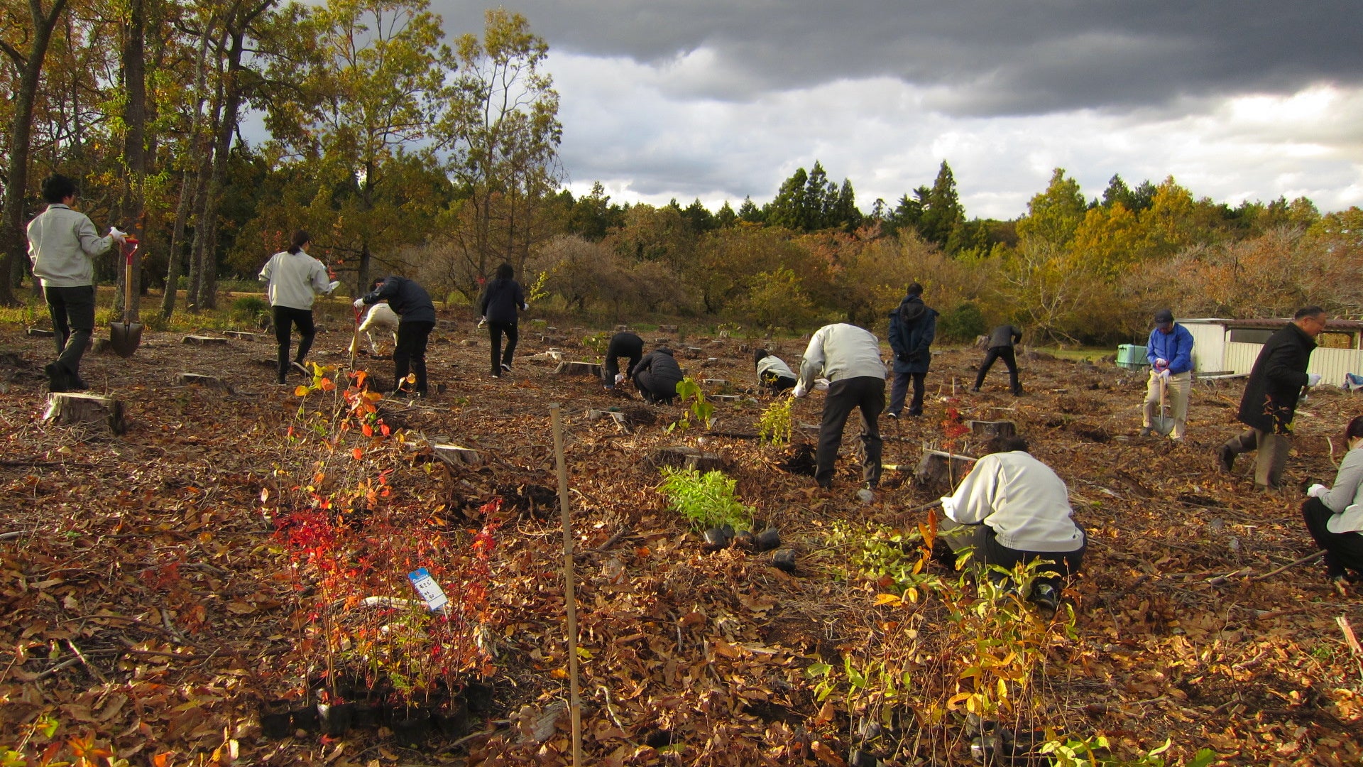 「日立ハイテクサイエンスの森」は、日立ハイテクサイエンス富士小山事業所(静岡県駿東郡)内にある約44,000平方メートルにおよぶ樹林です。地域社会の一員として「自然との共生」をめざし、2015年から、サイト内に生育している地域在来の植物を活用した、人工林からの広葉樹林化に取り組み、敷地内で採取したどんぐりから育てた従来の在来種であるクヌギ・コナラの苗木の植樹に加えて、イロハモミジ・エゴノキ・ムラサキシキブなどの高中低木種の苗木を植樹することで、より多種多様な樹木からなる森の再生に努めてきました。芝生地の一部をさまざまな在来の植物が広がる半自然のススキ草地へと転換するために、ススキの株分けと植え付けを行い維持管理にも努めています。また、森林整備活動の一環として、従業員も参加し、外来植物の駆除や昆虫の住み家となるインセクトホテルの設置も実施しています。敷地内には、希少植物の存在も確認されています。