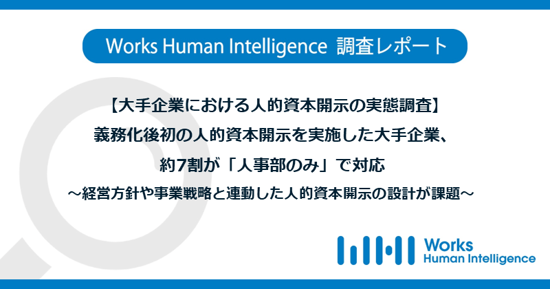 【大手企業における人的資本開示の実態調査】義務化後初の人的資本開示を実施した大手企業、約7割が「人事部のみ」で対応