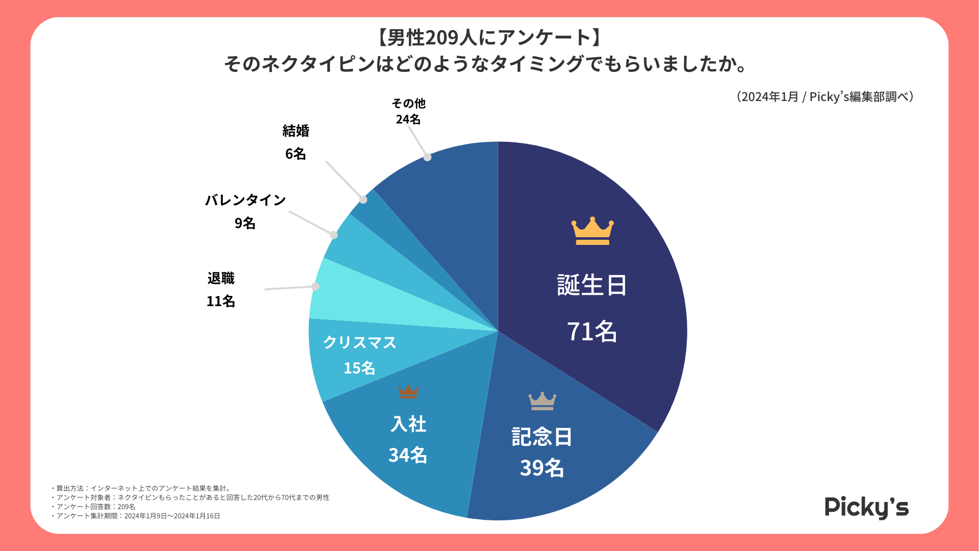 調査対象:ネクタイピンをもらったことがあると回答した20代から70代までの男性