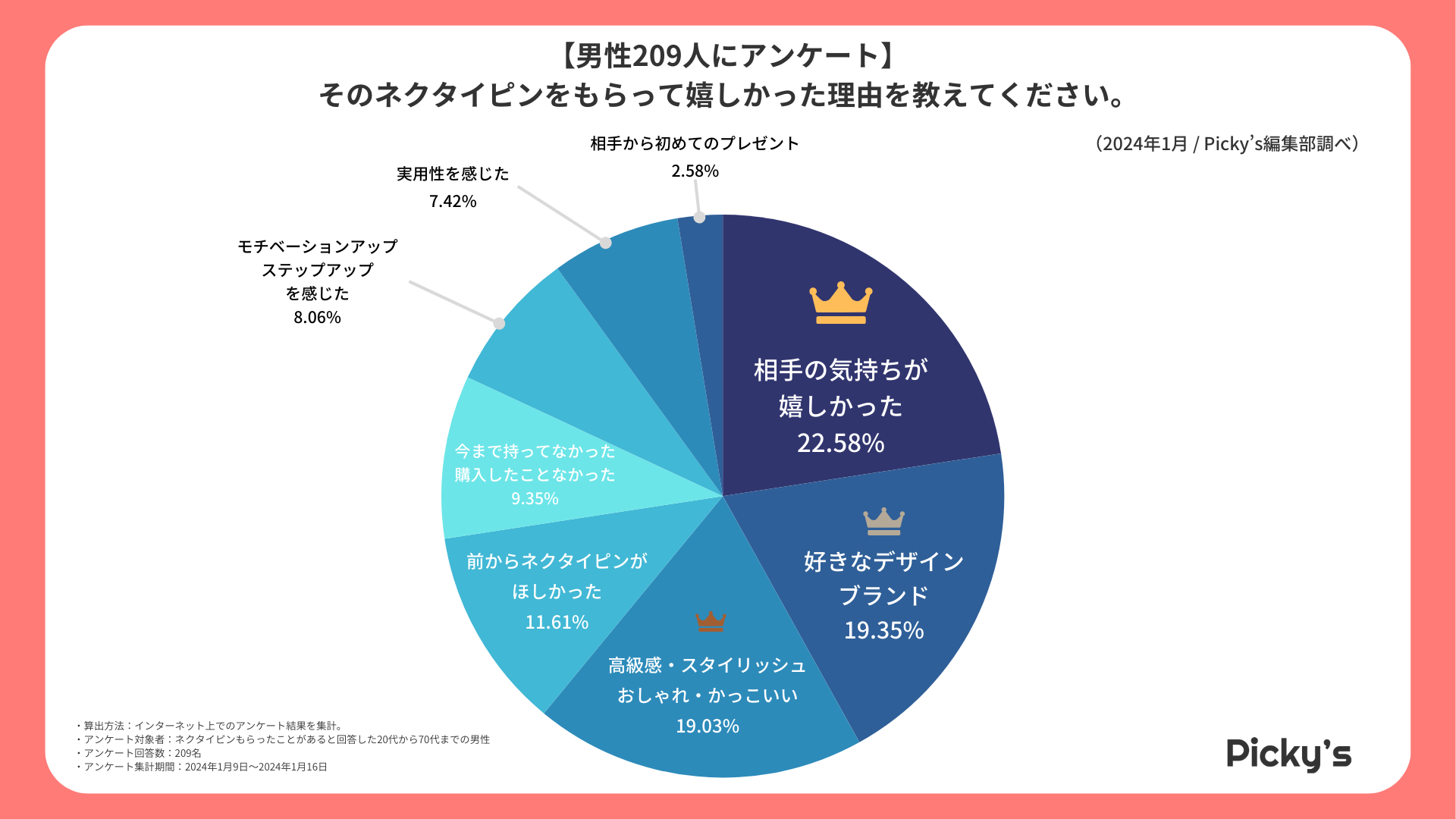 「Picky’s」は、インターネットショッピングにおいて、購入前に試せない・選ぶべきものがわからないという課題の解決を目標に、あらゆる商品のおすすめランキングや検証レビューを紹介するサイトです。このたびPicky’s(https://rentry.jp/)では、男性向けギフト関連に先駆けて、男性がどんなネクタイピンをもらって嬉しかったのか、インターネット上でアンケート調査を行いましたので発表いたします。