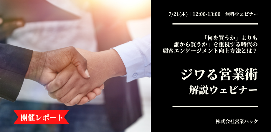 令和の勝ちパターンは「ジワる営業術」⁈営業ハックのノウハウをご紹介しました