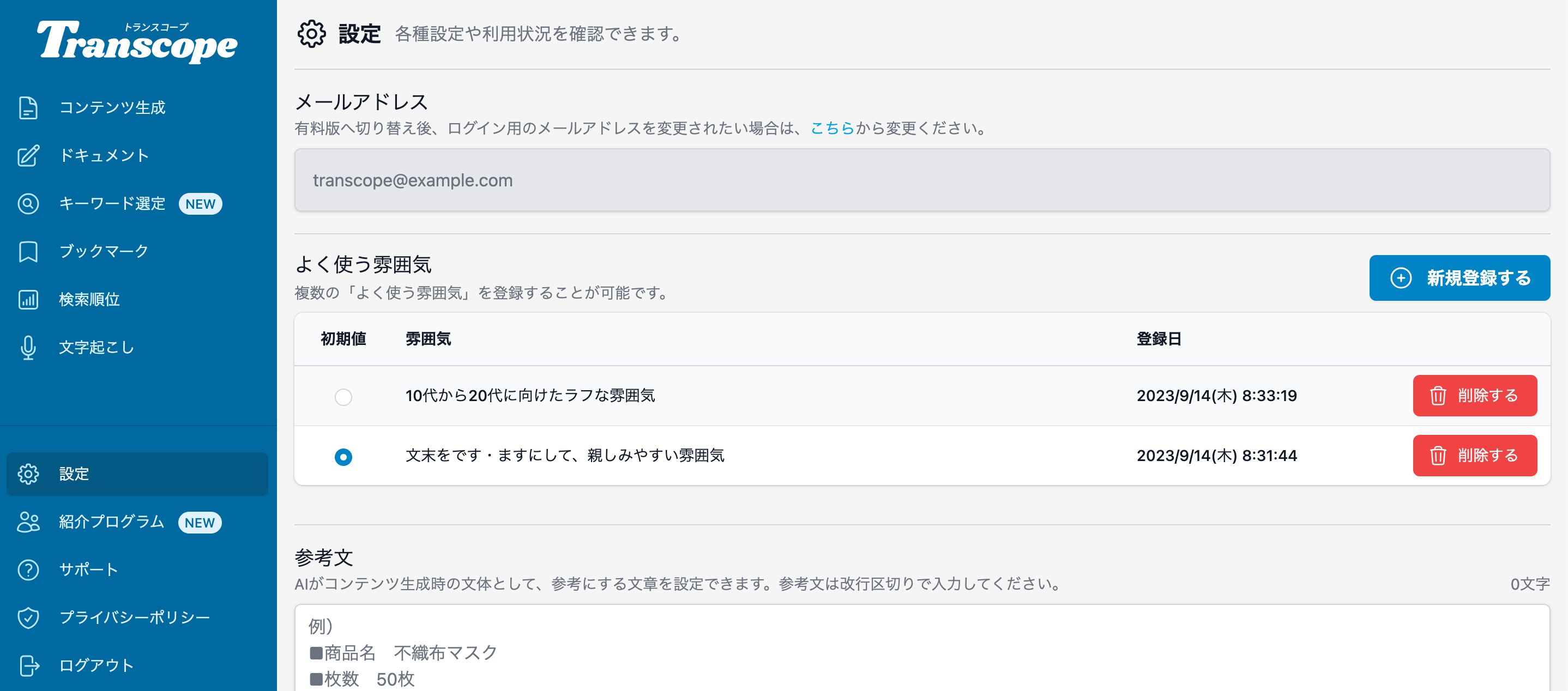 まずは無料プランからトランスコープをお試しいただくことも可能です。