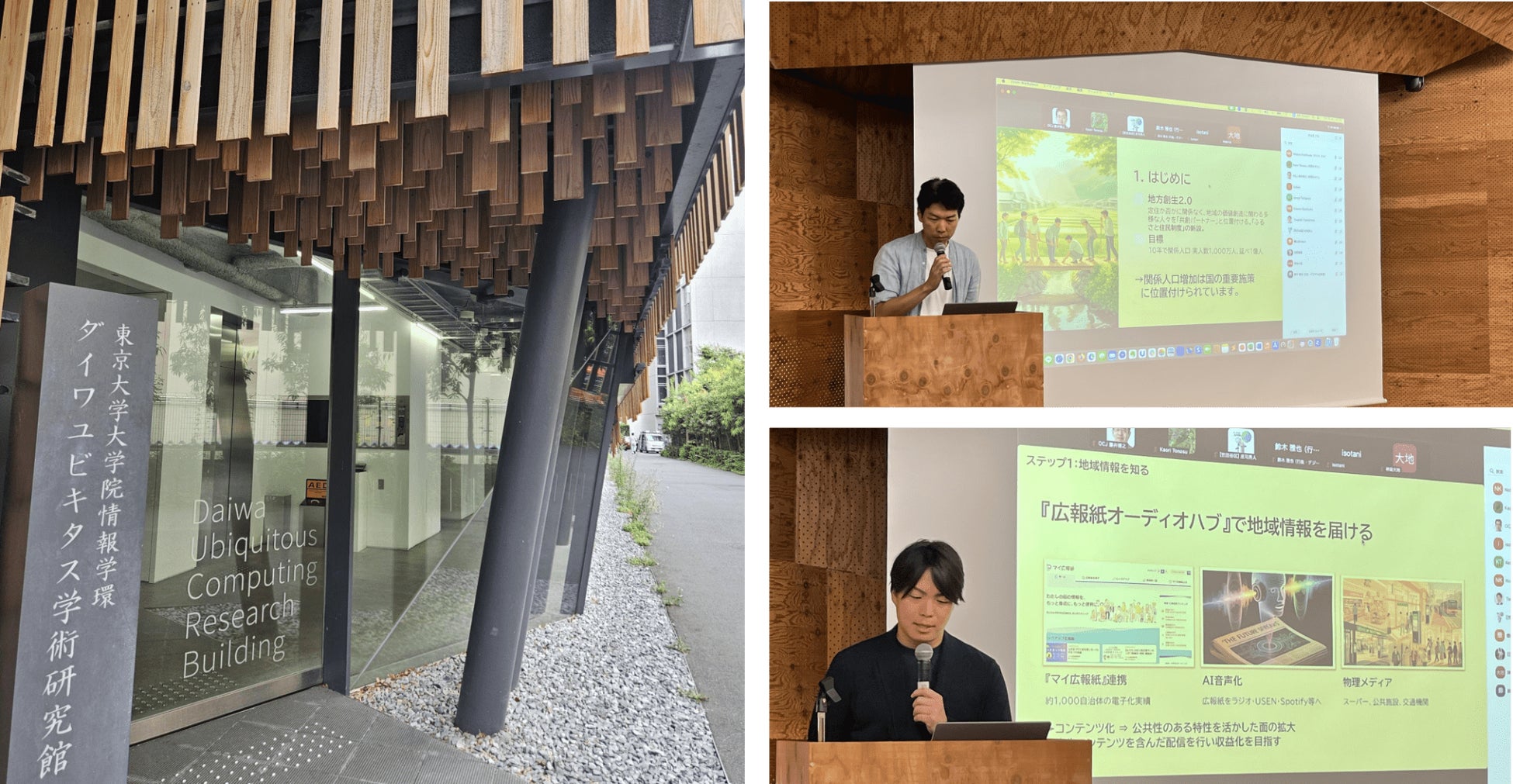 当日は、本イベントのテーマである「地域と行政の課題についてAIをいかに活用するか」に対して「広報紙データで地域と人をつなぐ」と題し、当社上席執行役員の熊本および日浅が登壇いたしました。