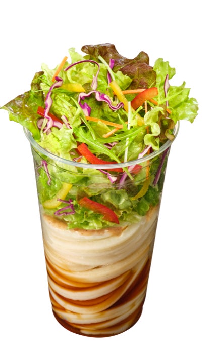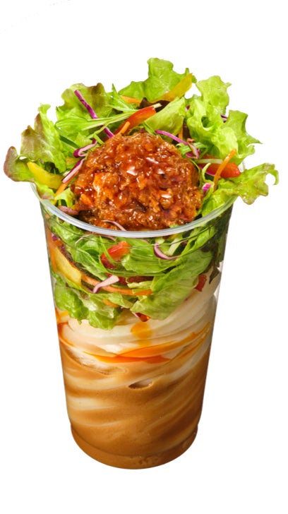 丸亀製麺のお持ち帰りでは初となるサラダと打ち立てうどんをカップ仕立てに。