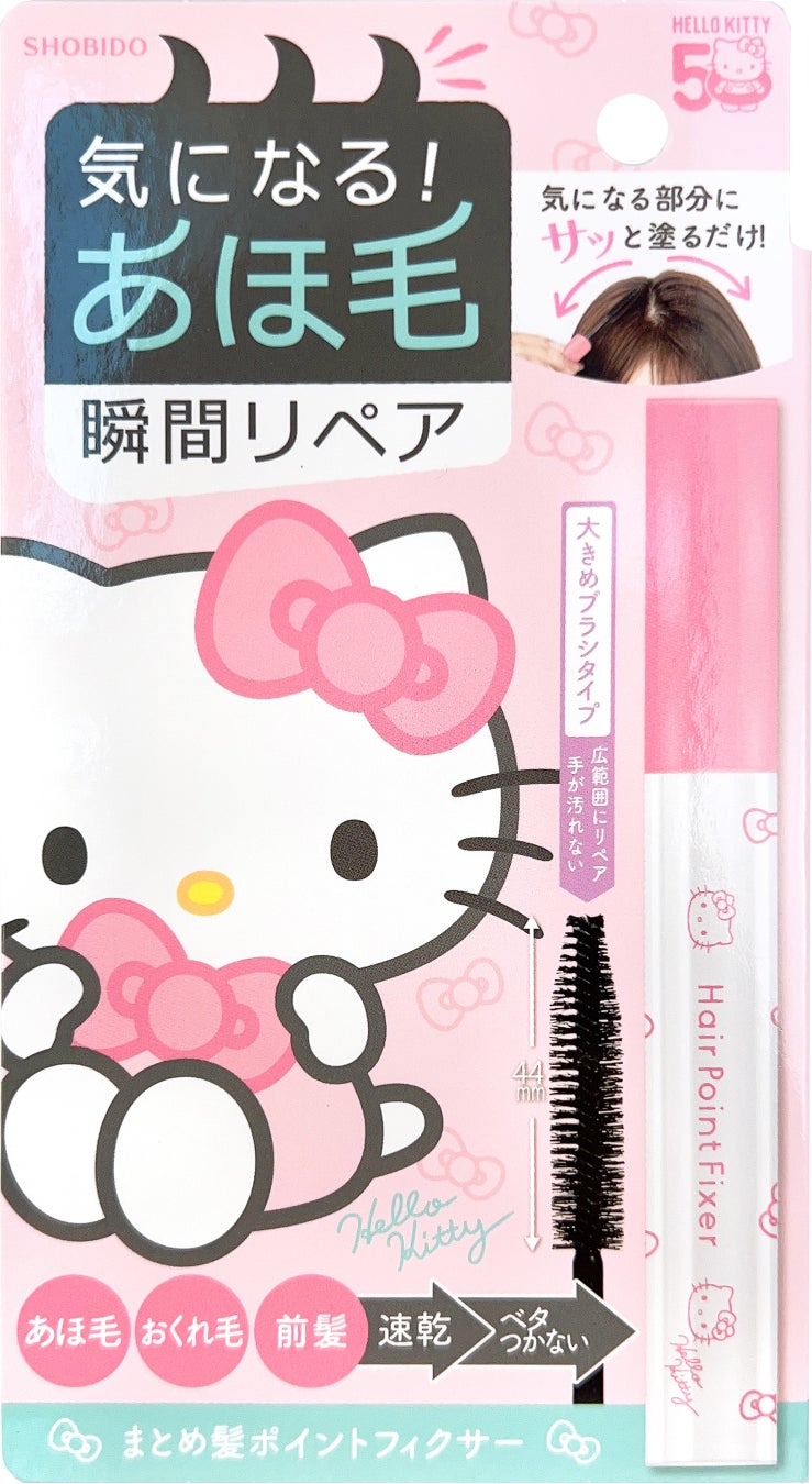 生え際や分け目のアホ毛をなめらかに整えてくれる人気アイテム「まとめ髪ポイントフィクサー」のハローキティ限定デザインです。44mmの大きめブラシで、気になるアホ毛をなでるだけで瞬間リペア。ハードに固まるタイプのスタイリング剤ではないので、ササっと塗った後に手ぐしで馴染ませたら、ナチュラルで立体感のあるニュアンス分け目に仕上がります。
