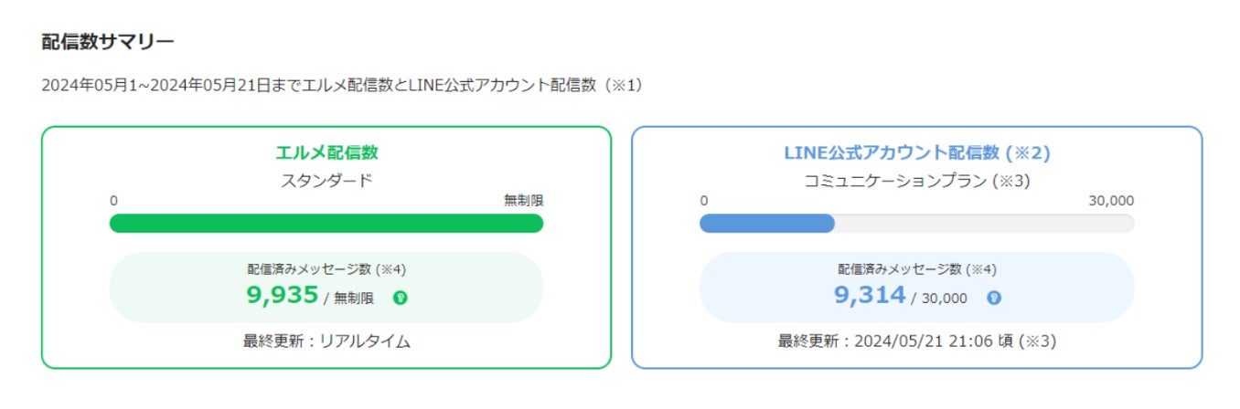 毎月1日〜月末までのL Message(エルメ)とLINE公式アカウントの配信数が一目でわかります。