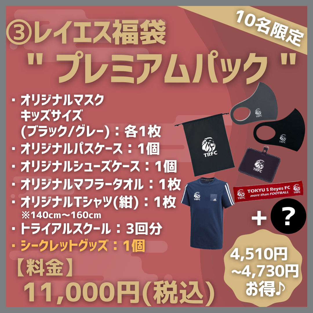 東急SレイエスFCから日頃の感謝の気持ちを込めて、赤字覚悟のレイエス福袋の登場です!絶対にお得なレイエス福袋は数量限定ですので、ぜひお早めにご購入ください。