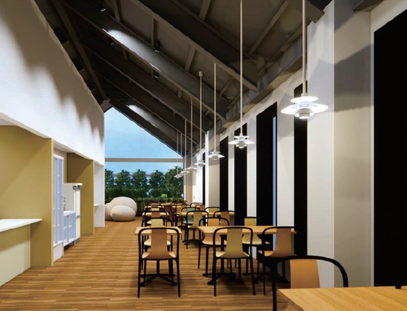 食堂やシェアキッチン、フィットネスルーム等を自由に利用できます。