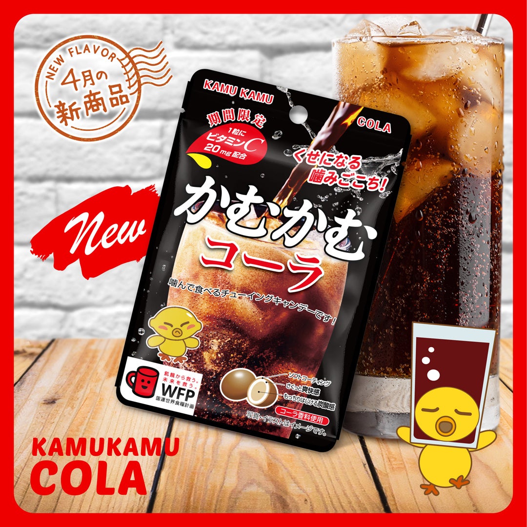 4月に発売するコーラ味はかむかむシリーズの中でもトップレベルの人気であり、売れ筋フレーバーです。炭酸と言って思い浮かぶのはまず「コーラ」。どの年代にも人気が高いコーラと特徴的な噛みごこちを合わせた商品です。