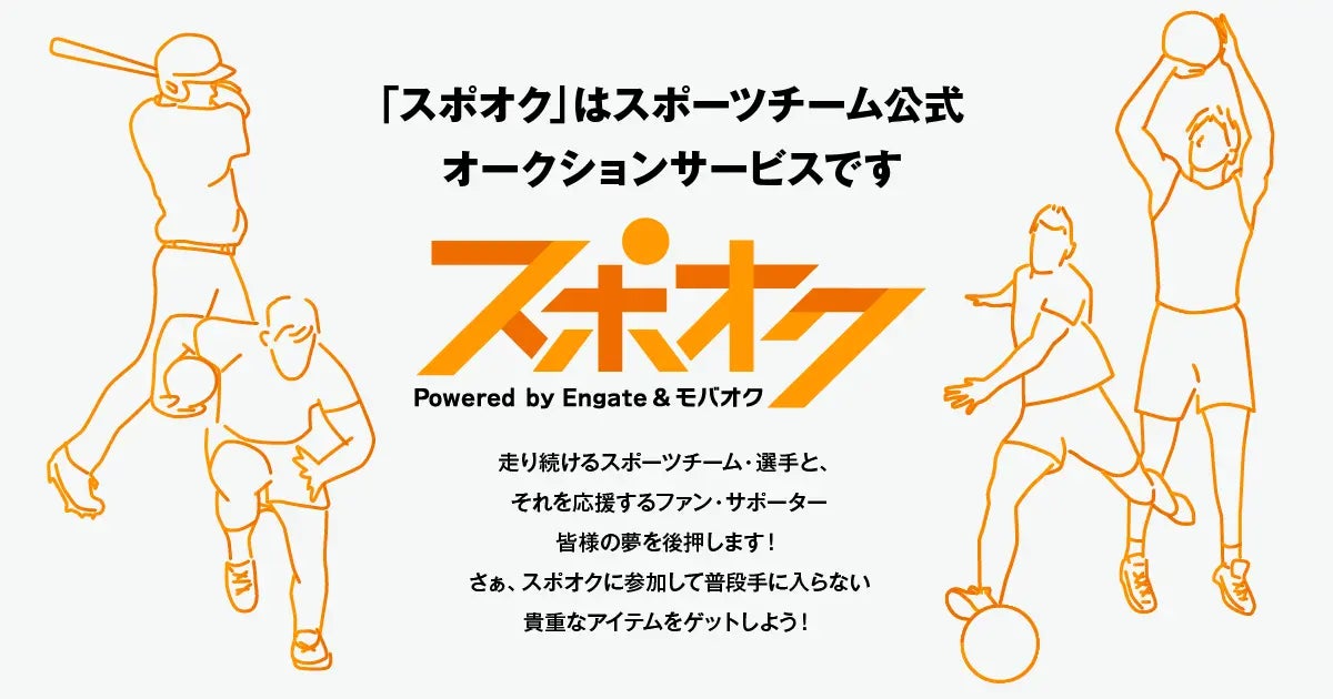 また、スポーツに特化したスポーツチーム公式オークション「スポオク」もエンゲート株式会社と業務提携し提供しており、走り続けるスポーツチーム・選手と、それを応援するファン・サポーターの夢を後押ししている。